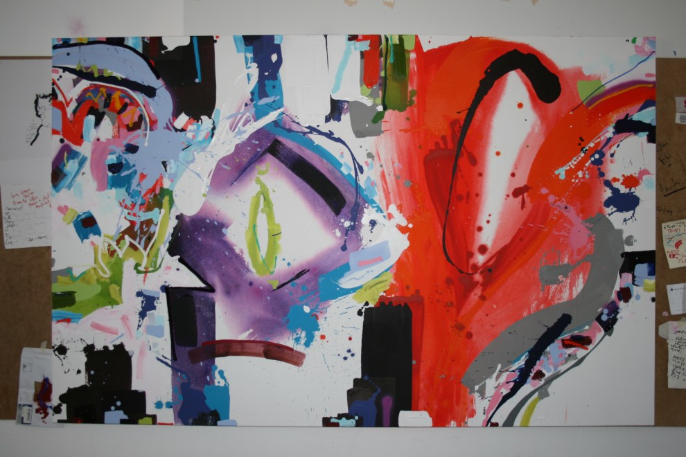 So, in my brief visit there, in early 2008, whilst delivering a new piece of artwork to collector Darren, and wife Margarete, and in the company of my young friend, Mary the Dancer, we decided we should celebrate with a drink and a bite. Dipping into fondue, whilst sitting around an elegant kitchen table, in their newly decorated minimalist Soho loft, I was pleased to be witness to the phrase of the moment, delivered to me from my young friend, Mary. Darren scans the artwork from a distance… ‘And have you titled this one, Philip?’