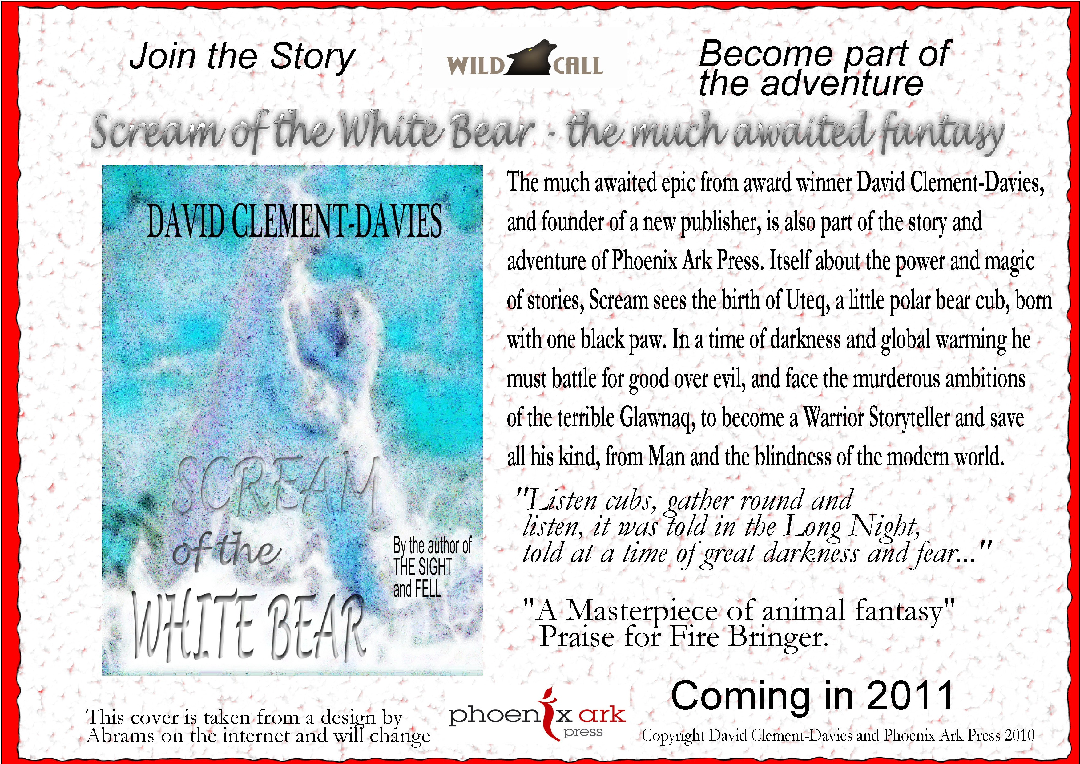 Story, book and lyrics by David Clement-Davies, brilliant music by Michael Jeffrey, Copyright Phoenix Ark Press 2014. This sequence was sound synced by the multi bafta winner Lee Crichlow. PS M Jeffrey is a twat (this is the personal opinion of the author and has no reflection on any real characters involved.)