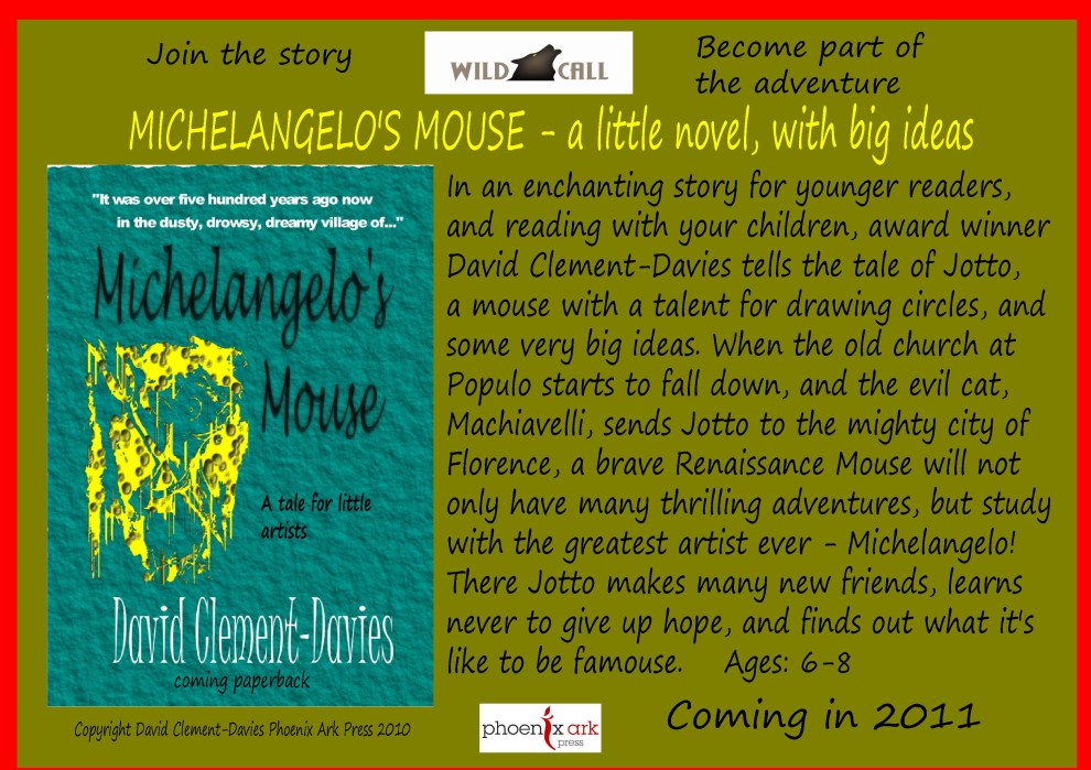 Since this story of Phoenix is being blogged, as it happens, and B sent such a kind post, I wanted to share the excerpt from Michelangelo’s Mouse, that’s being chipped away at, at the moment. It’s for younger children, but the spirit is that artistic fight to believe in work, beyond even making money, though that would be nice too! Had a wonderful illustration on Saturday of our hero mouse, and the artist is now at work too.